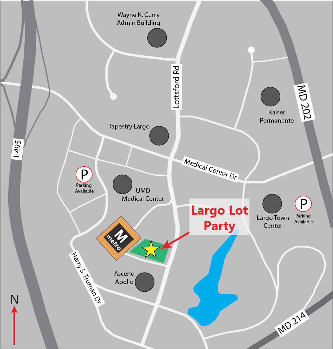 While we encourage you to take the Metro, walk, bike, or take the bus to the event, parking is available at the Downtown Largo Metro parking garage. However, there are fees depending on which day you attend the Largo Lot Party.